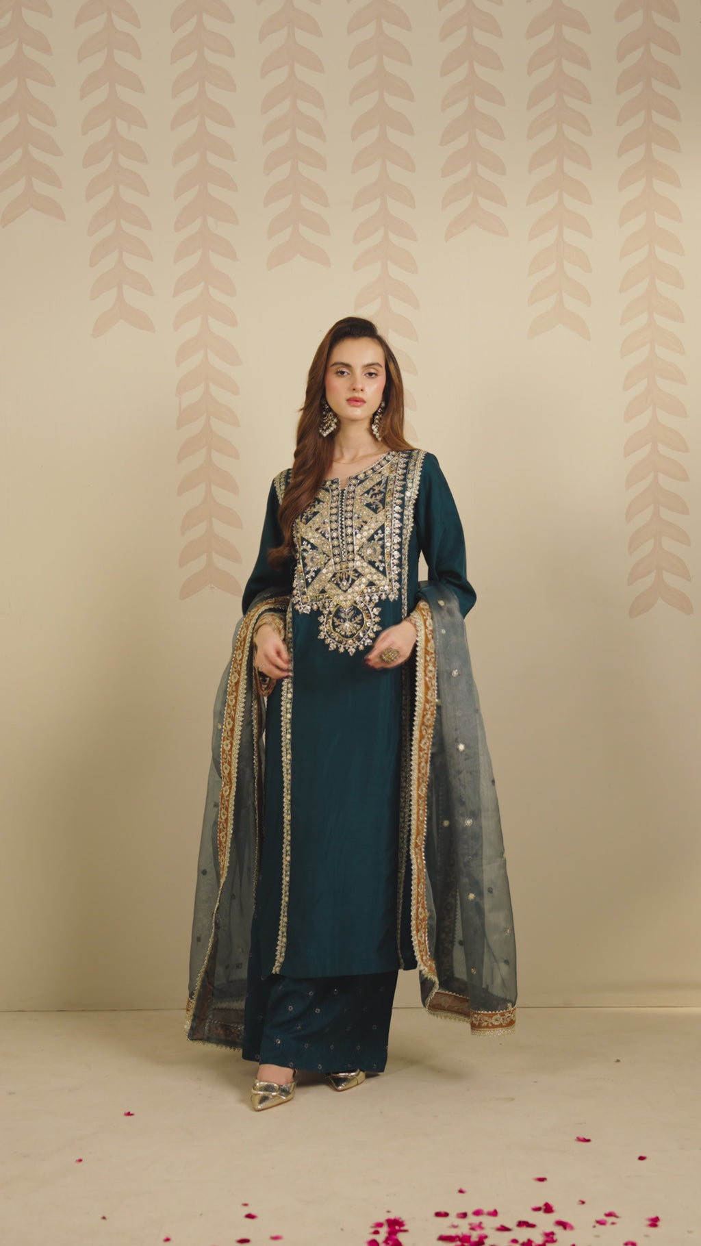 • Daman: Finished with an intricately embroidered border.