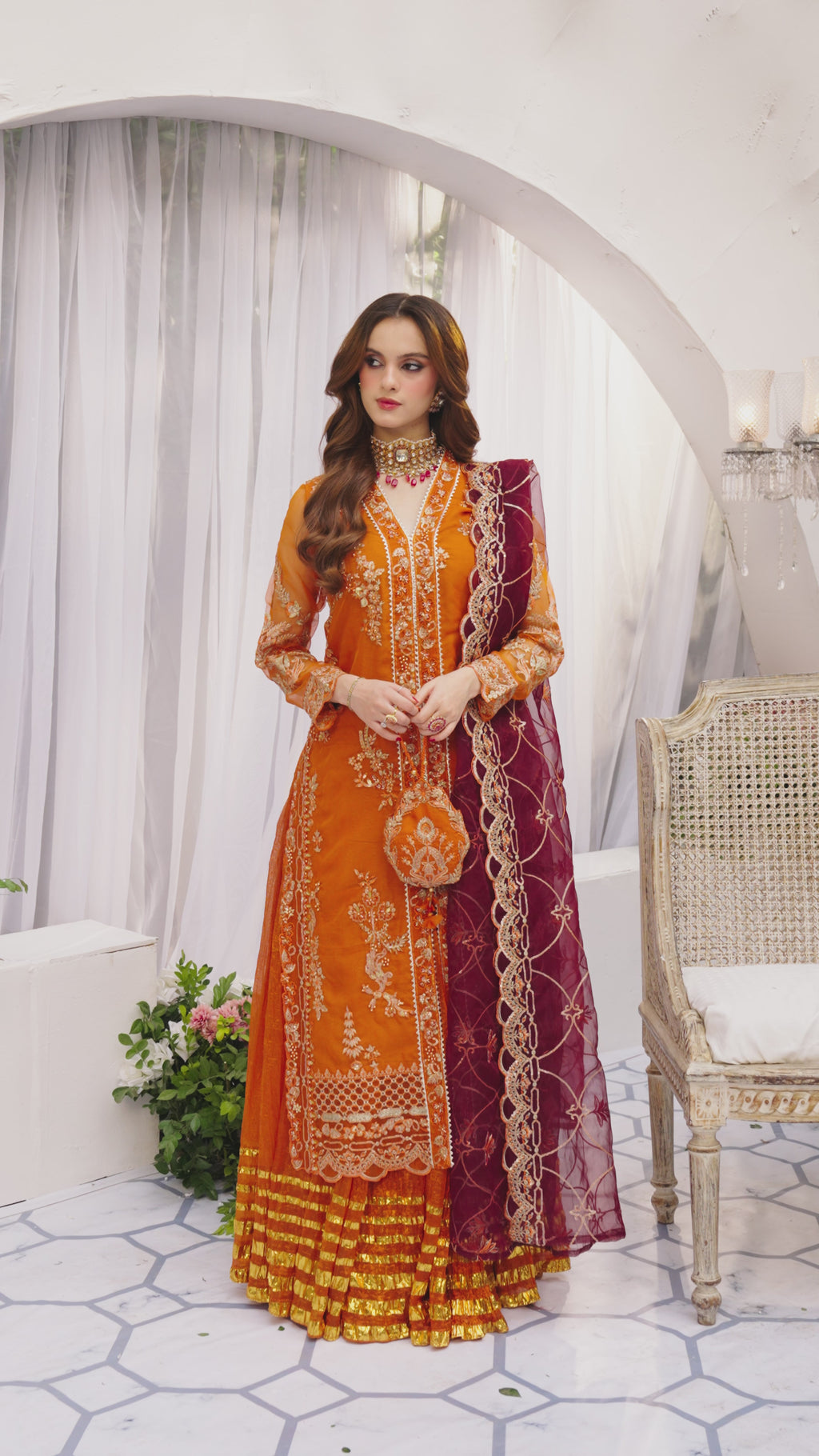 Heavy embroidered organza dupatta, finished with rich sequins and embroidered borders.