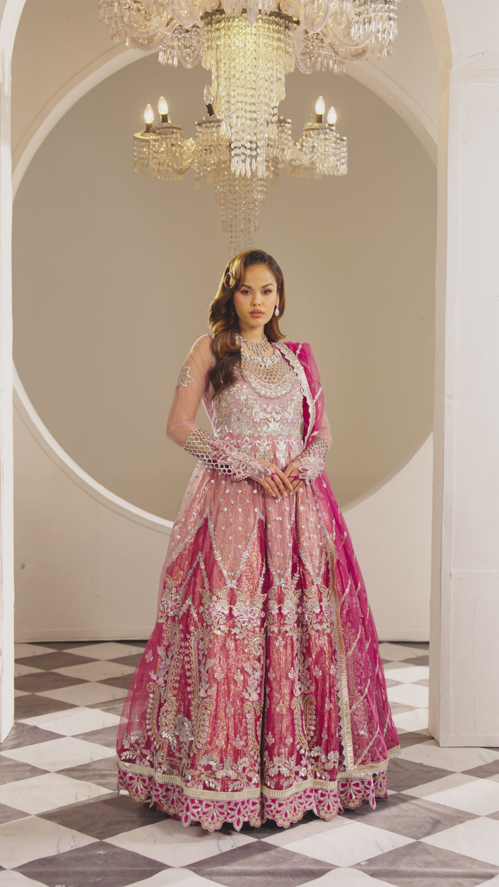 • Panels: Sequin and resham embroidered ombré panels, elegantly finished with an embroidered daman border.